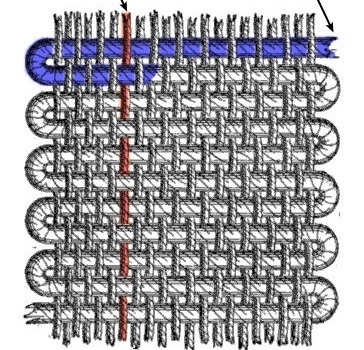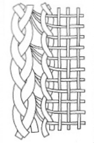 Le tissage se fait par entrecroisement de fils de chaîne (les fils tendus sur le métier à tisser) et fils de trame. La manière dont les fils sont entrecroisés définit ce qu’on appelle ‘armure’. La plus répandue est l’armure toile ou drap : le fil de trame passe alternativement sur puis sous un fil de chaîne, et réciproquement.