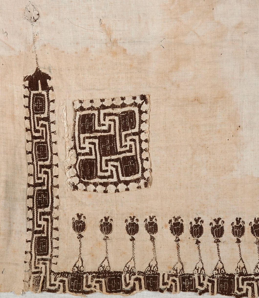 Si les Coptes ont été tôt christianisés, dans leur production textile les thèmes et symboles de cette religion sont très largement minoritaires. L'art copte, en général, est très imprégné de culture classique. La collection Fill-Trevisiol comporte un seul fragment présentant un motif de croix ansée. « Encore s'agit-il d'un héritage de l'époque pharaonique », précise Florence Calament, conservateur du Patrimoine au département des Antiquités égyptiennes du Musée du Louvres. « Le signe ankh, symbole de vie, est passé dans le répertoire chrétien pour symboliser la croix du Christ et l'espérance en la vie éternelle qui y est rattachée ». On notera que la collection compte plusieurs pièces comportant des motifs de croix grecque, mais présents de manière assez discrète.